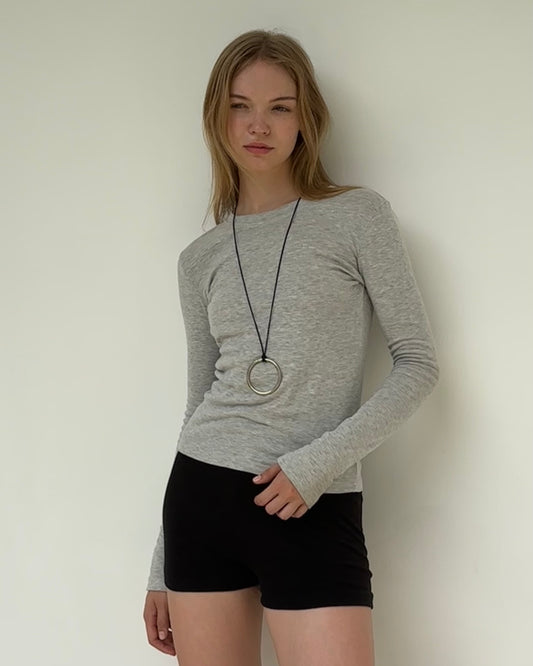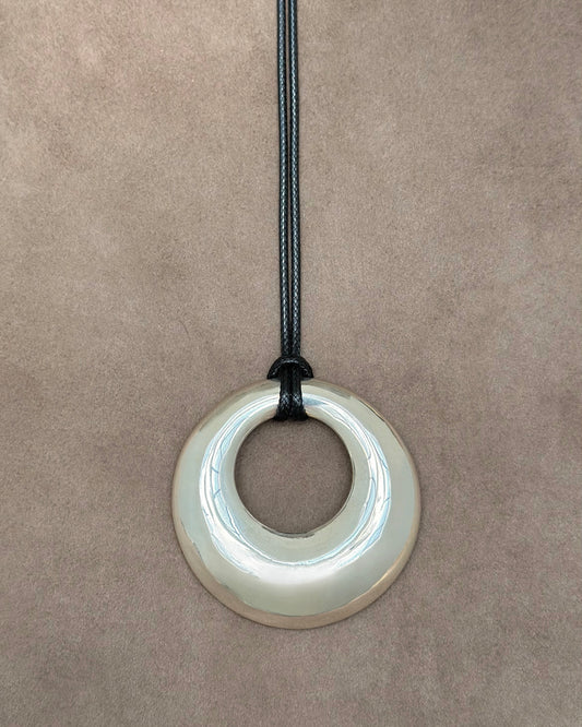 Sold outSMALL SILVER OVAL LONG CORD NECKLACE