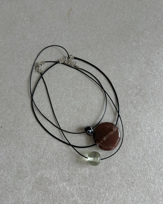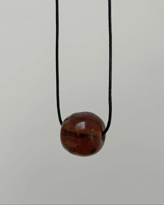 LARGE CLEAR BROWN GLASS SPHERE LONG CORD NECKLACE