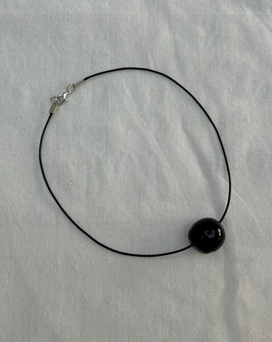 TINY WHITE / BLACK PAINTED GLASS SPHERE NECKLACE