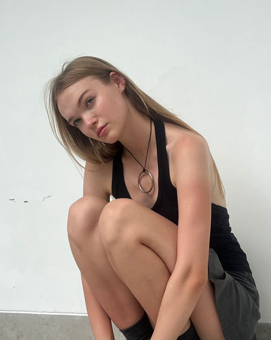 Sold outSMALL SILVER OVAL CORD NECKLACE