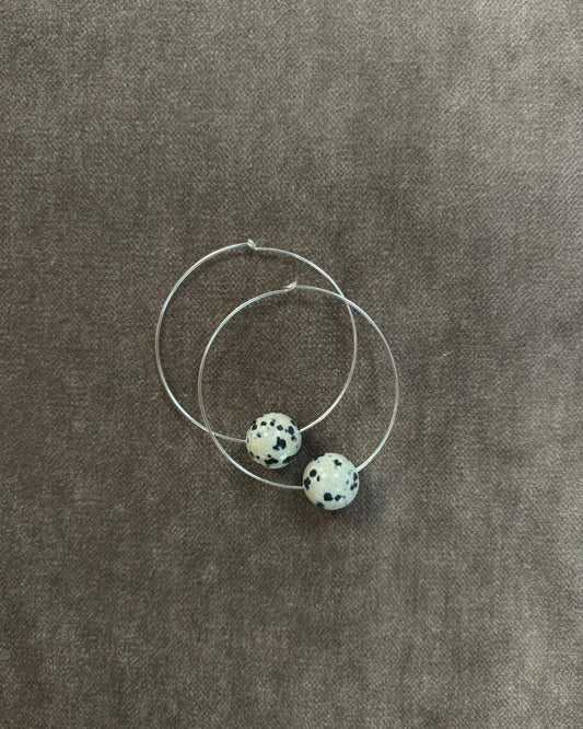 DALMATIAN JASPER SPHERE HOOP EARRINGS 01