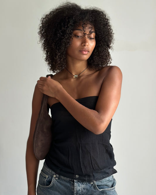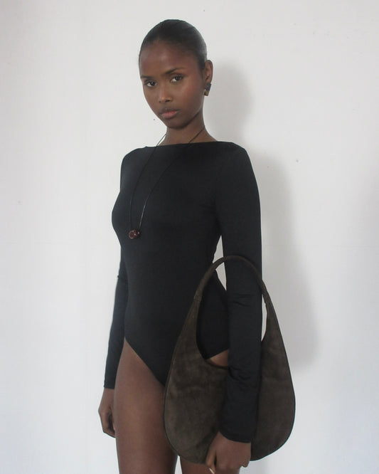 BROWN GLASS SPHERE LONG CORD NECKLACE