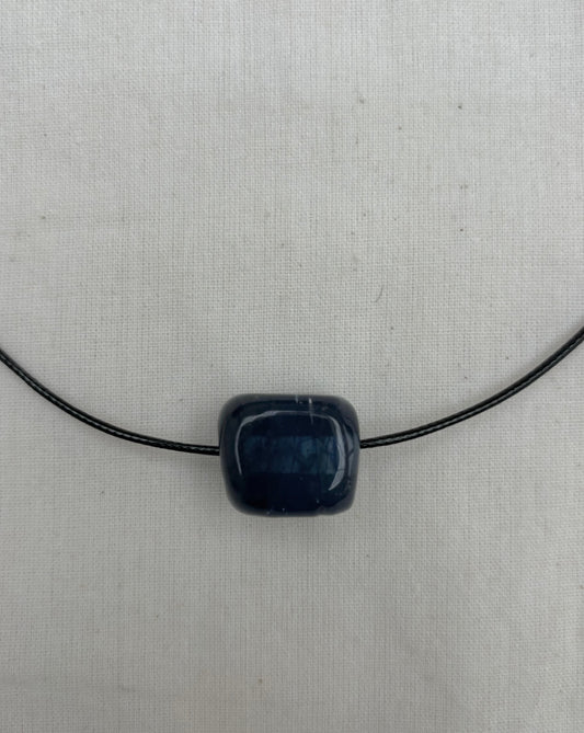 BROWN GLASS CUBE LONG CORD NECKLACE