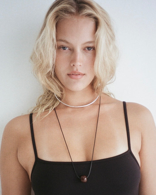 BROWN / AMBER AGATE HOOP NECKLACE 02