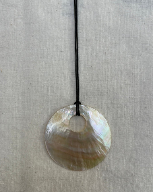 MOTHER OF PEARL SHELL DISC LONG CORD NECKLACE