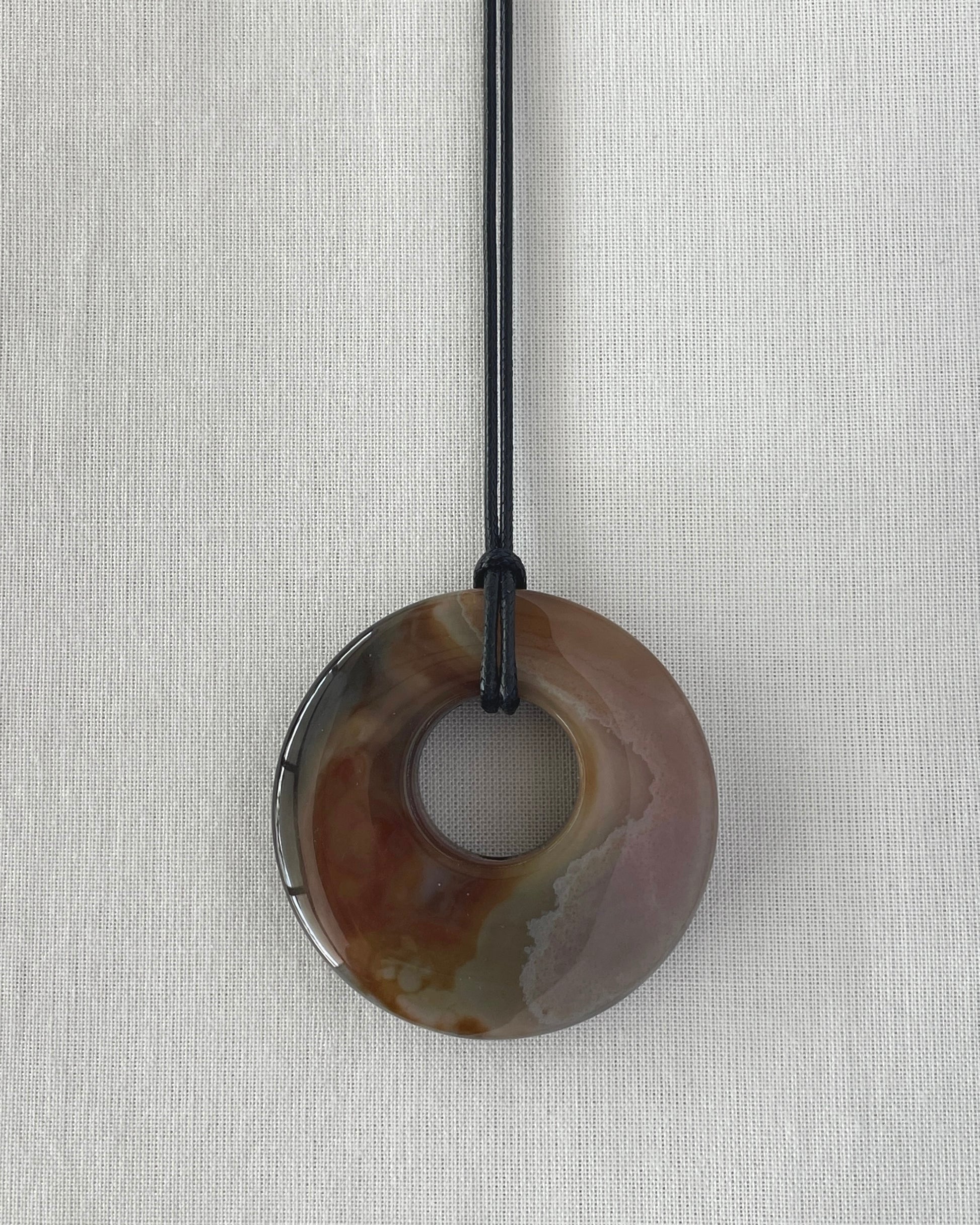 BROWN / AMBER AGATE HOOP NECKLACE 08