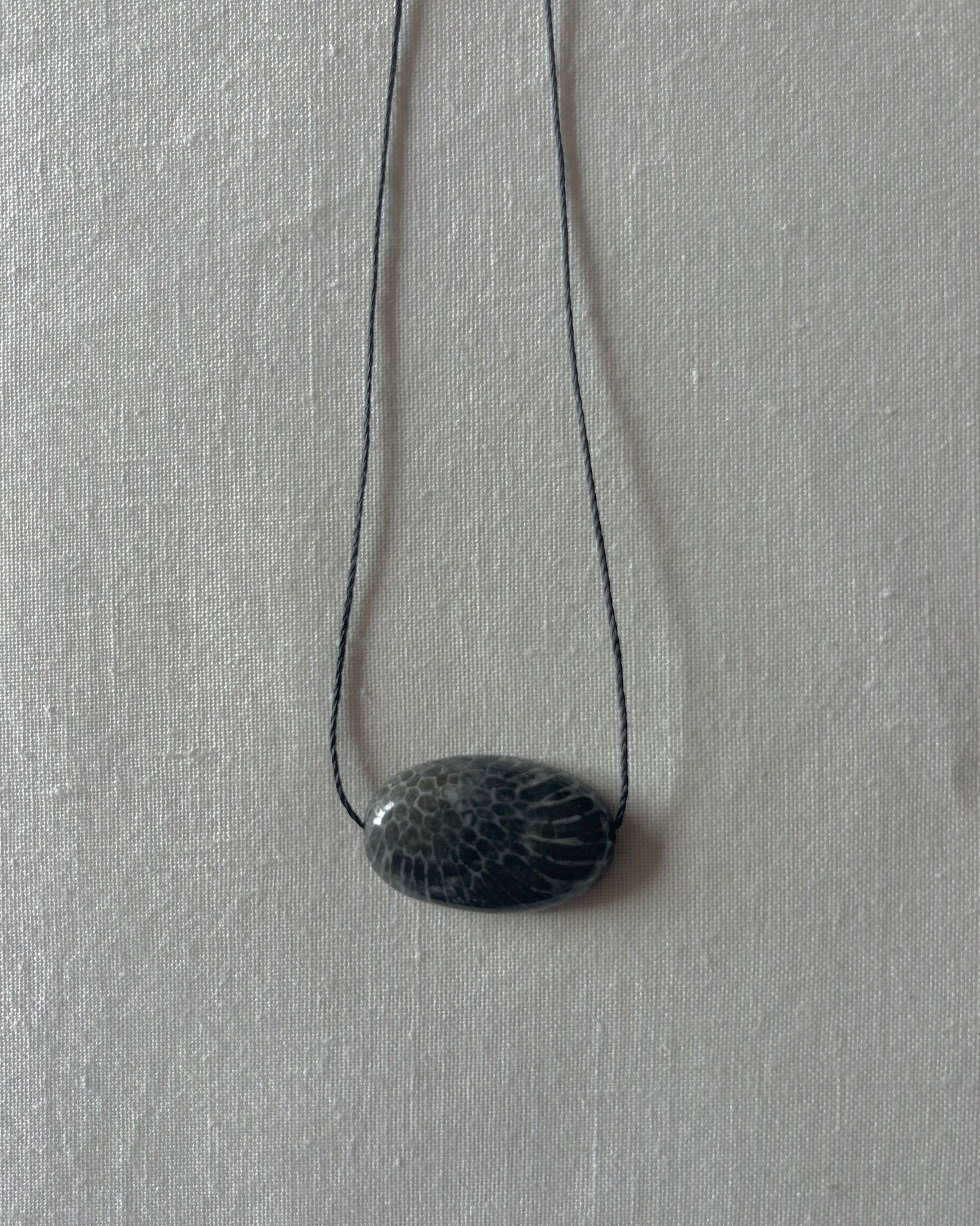 GREY FOSSIL CORAL OVAL NECKLACE 01