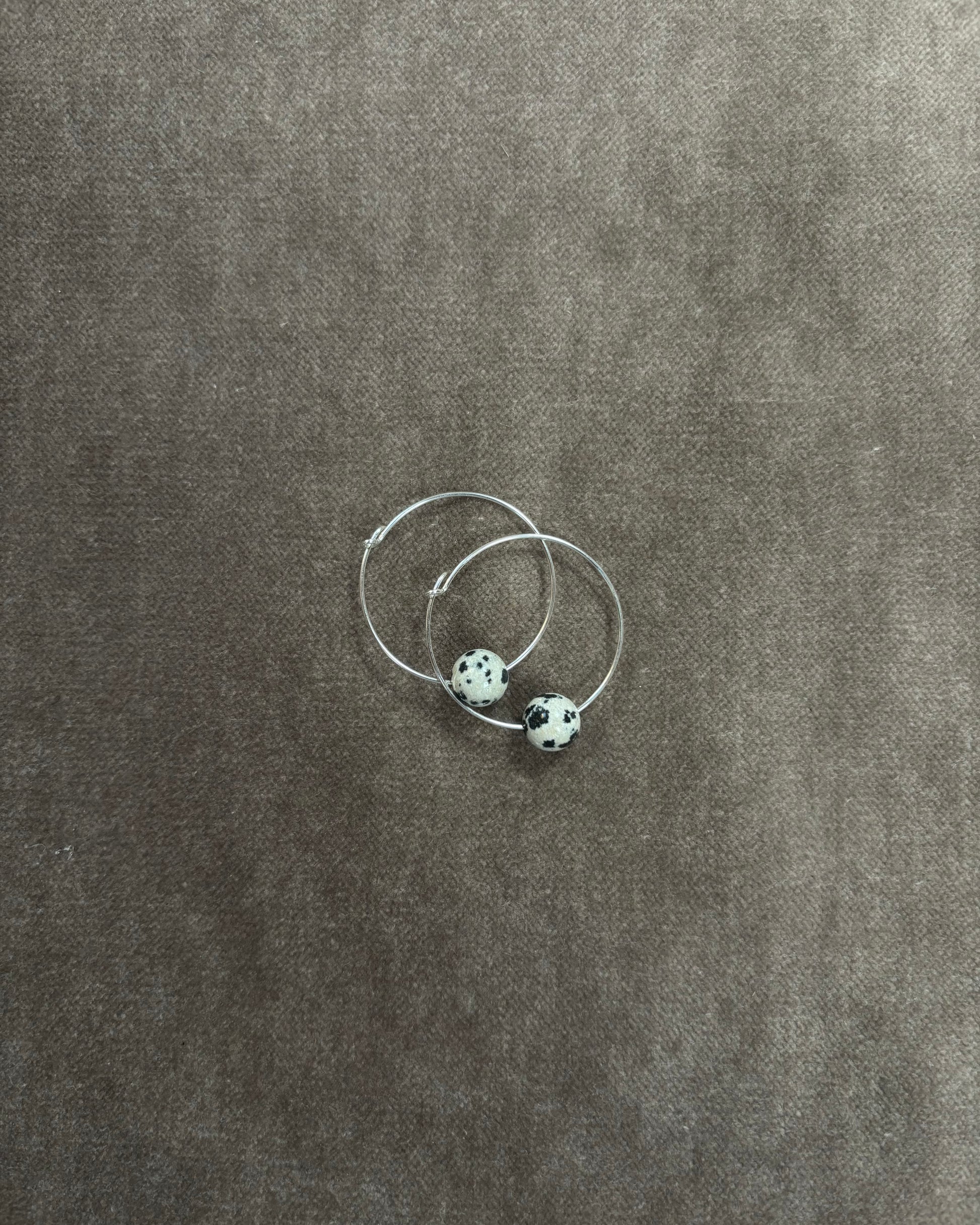 SMALL DALMATIAN JASPER SPHERE HOOP EARRINGS 01
