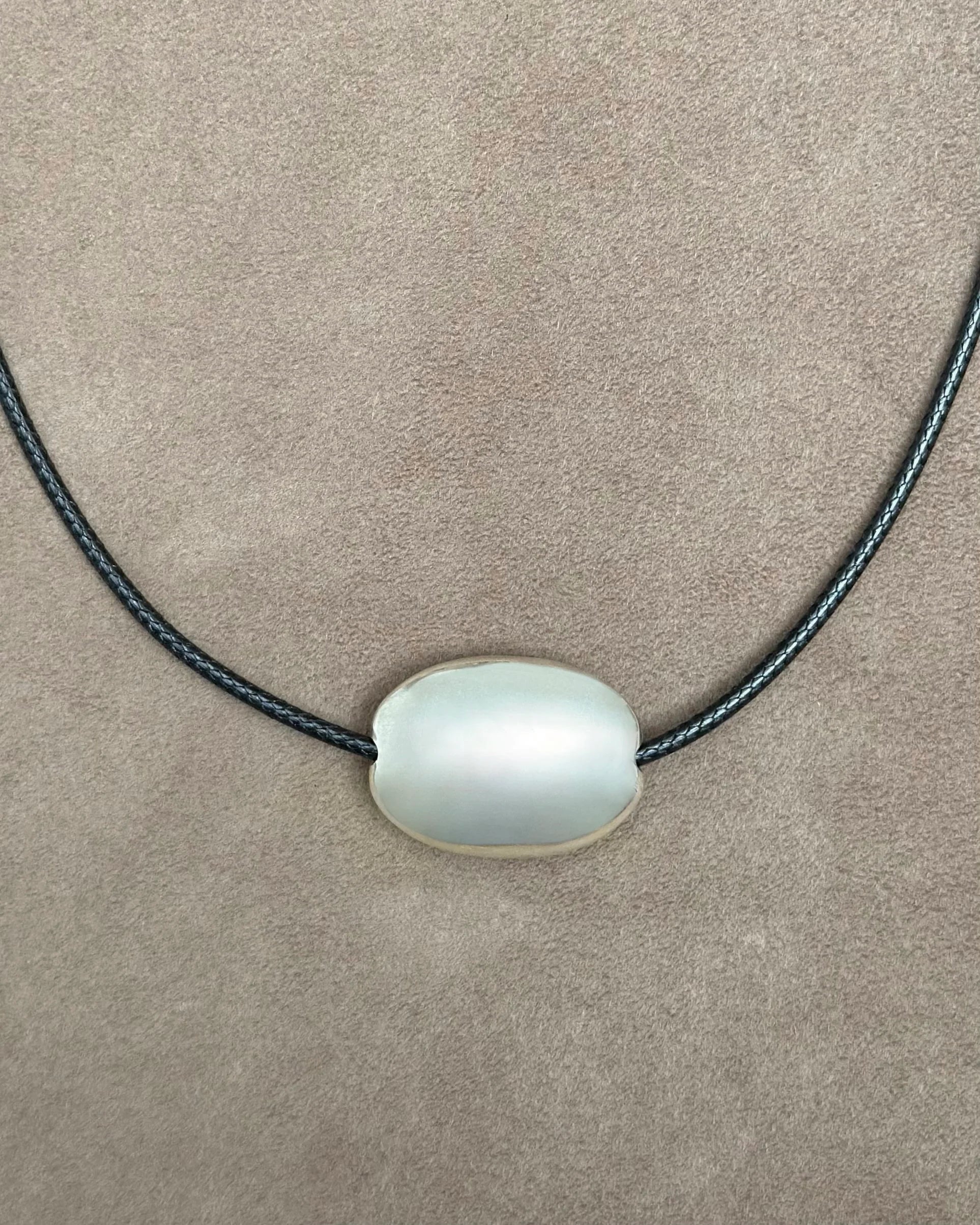 SMALL SILVER OVAL LONG CORD NECKLACE